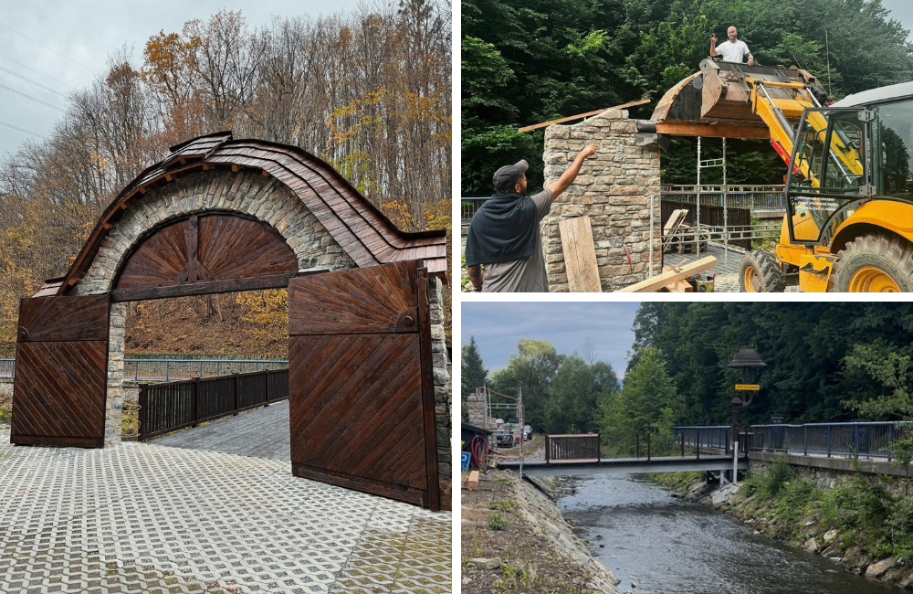 Jedním z největších zásahů byla výstavba kamenné brány a nového mostu. Po povodni jsme na vlastní náklady realizovali novou regulaci toku a vybudovali hluboké základy s betonovým nosníkem. Na této náročné stavbě se podílela stavební divize ISMM & TESO, pan Randula a pan Patrik Hořava, který realizoval kamennou bránu.