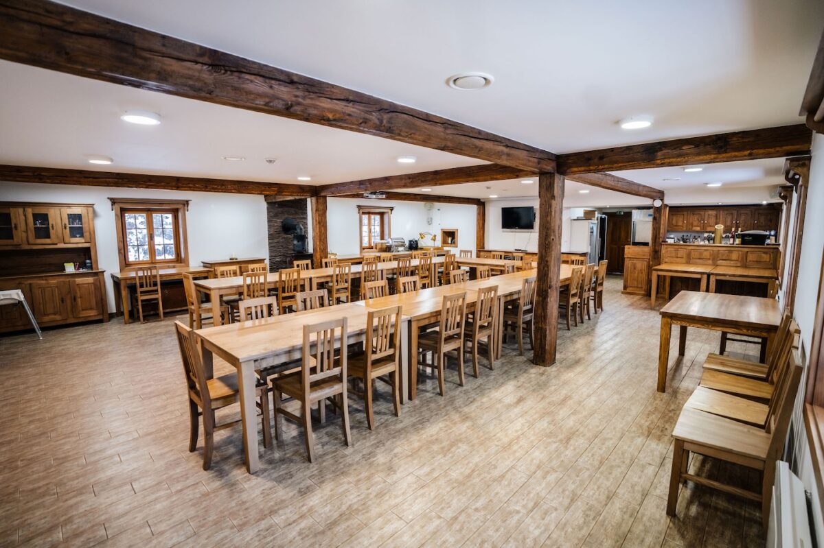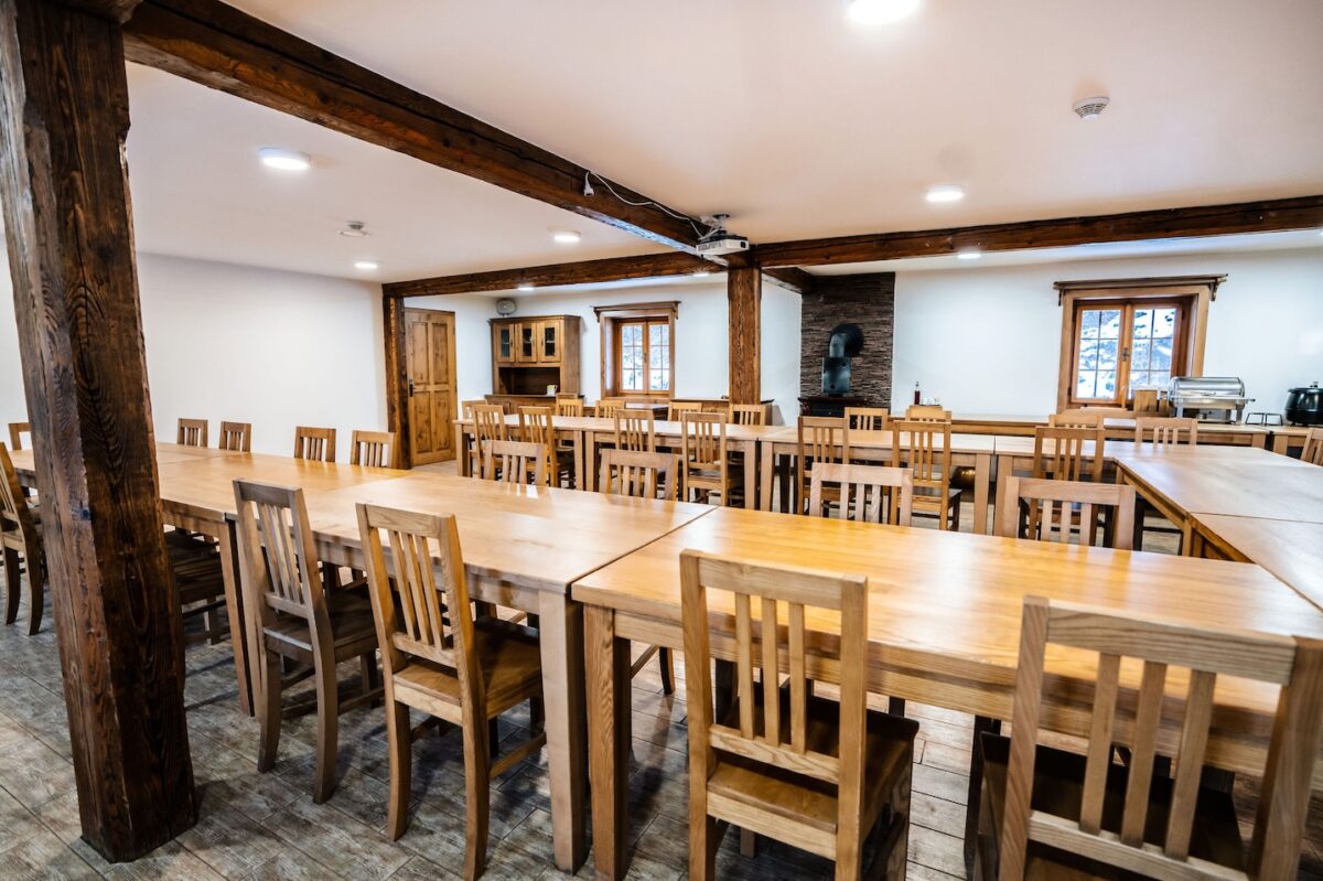 Naše koliba je vhodná pro akce do 60 osob při sezení. Prostor umožňuje různé varianty uspořádání podle typu akce. Přizpůsobujeme rozložení stolů slavnostní tabuli, pracovním setkáním i volnějšímu konceptu s prostorem pro prezentaci nebo společný program.